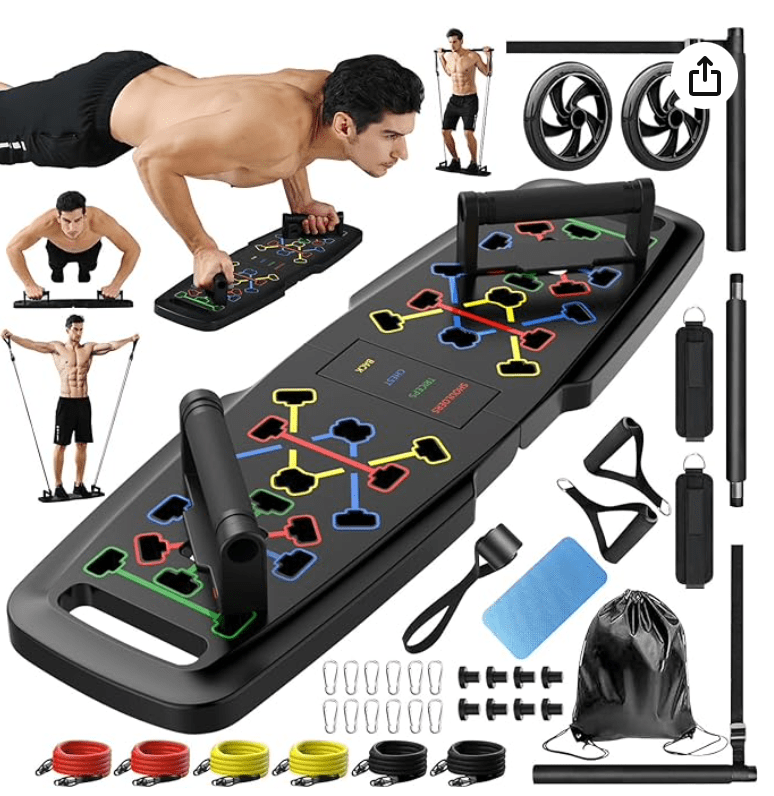 6. Push Up Board, Home Gym,Portable Exercise Equipment, Pilates Bar & 20 Fitness Accessories with Resistance Bands & Ab Roller Wheel, Full Body Workout at home. $39.99 at Amazon.