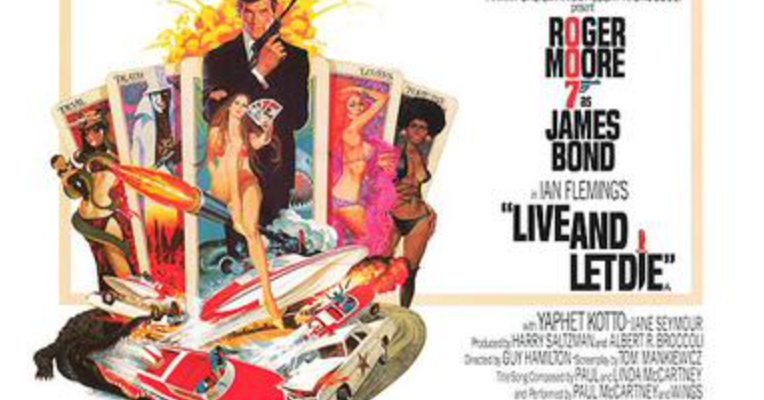 Live and Let Die is the eighth film in the James Bond series produced by Eon Productions, and the first to star Roger Moore. The film is based on Ian Fleming’s 1954 novel of the same name. The storyline involves a Harlem drug lord known as Mr. Big, who is revealed to be the alter ego of Dr. Kananga, a corrupt Caribbean dictator, who rules San Monique, a fictional island where opium poppies are secretly farmed. Bond is investigating the deaths of three British agents, leading him to Kananga, and he is soon trapped in a world of gangsters and voodoo as he fights to put a stop to the drug baron’s scheme. It is set in Harlem and New Orleans, as well as the Caribbean Islands. It was also the first James Bond film featuring an African-American Bond girl romantically involved with 007, Rosie Carver, who was played by Gloria Hendry.